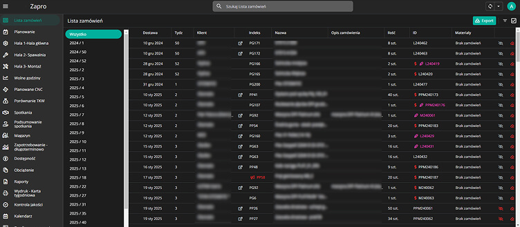 Proces wdrożenia przebiegł sprawnie i szybko. 14 września podpisaliśmy z klientem umowę, a 28 września ruszyły prace nad ZaPro spersonalizowanym dla tej firmy. Już 12 października udało się przejść do nowego obszaru: Planowanie Produkcji. Z czasem wdrożyliśmy kolejne obszary: KJ, zakupy i transport, a także moduł raportowania (zarząd, księgowość, kierownicy).